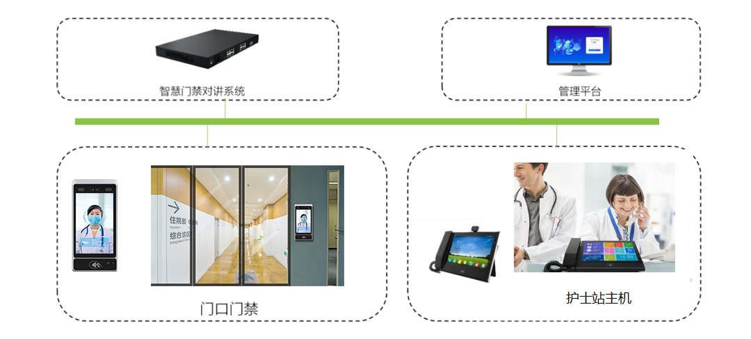 可視對講人臉識別門禁終端可以安裝在醫(yī)院大門口、內(nèi)部單元樓門口等,門禁管理平臺統(tǒng)一管理。