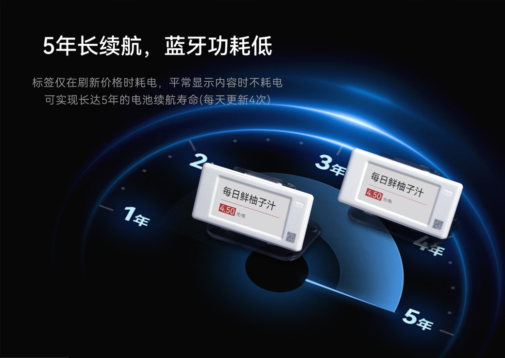 天波信息自創(chuàng)立以來始終致力于新零售產(chǎn)品的迭代創(chuàng)新,不斷提升產(chǎn)品布局與設計水平,擁有卓越的市場表現(xiàn)和行業(yè)認可。如今,天波信息推出的最新一代電子價簽,采用電子墨水屏、多色屏幕指示燈和藍牙 5.2無線連接,更快連接到基站和云平臺,滿足更多不同場景的營銷需求,電子標簽特有的低功耗設計還能可實現(xiàn)長達5年的電池續(xù)航壽命,對比傳統(tǒng)紙更環(huán)保耐用。